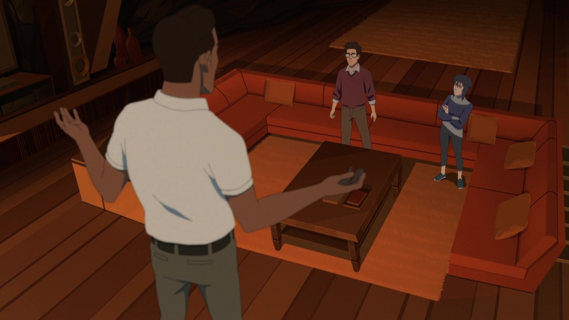 To find out more about her, Vinod looks for the IP address where the call she gave his mother came from and goes for her. At Laurie and David Kim's server, Vinod enters aggressively, thinking that he is at the Pentagon; he tells Laurie her call to his mother was something he took as a threat, though she didn't remember calling her or not. While Cody, Laurie's husband, tells her not to engage, Vinod overclocks so he can hold a private conversation with Laurie and David, both of whom he learns were uploaded by Logorhythms- not the Pentagon, and that the two couldn't afford to overclock like he did, as he didn't know about the flaw. David tells him he can't be trusted due to his murder of the Prasads, but Chanda tells him that he can explain why. He also tells Laurie and David that before he met them, he thought he was alone- so alone.