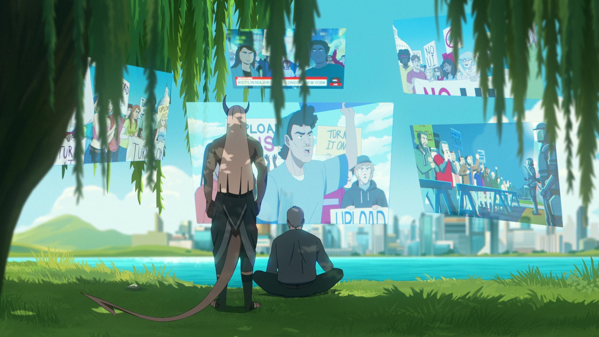 Seeing Holstrom being consumed by SafeSurf, Vinod and Ping go offline as Holstrom removes traces of the antiviral. Holstrom reconstructs the willow tree that broke down and glitched upon his arrival, telling Ping and Vinod that as willow trees had the shortest lifespan of all trees on earth, it reminded him of humanity; the cloud is the one place where both the willow tree and humanity could be immortal. Vinod tells Holstrom that if he's vulnerable to their attack, there's no hope for the UIs. Holstrom tells Vinod that regret's a waste of energy; Ping asks him what he will do now, which Holstrom responds to by telling him they'll fight back. Vinod asks him how he'll do it, given the three of them and an entire race of "them." Vinod and Ping inspect the traces of SafeSurf that Holstrom removed.